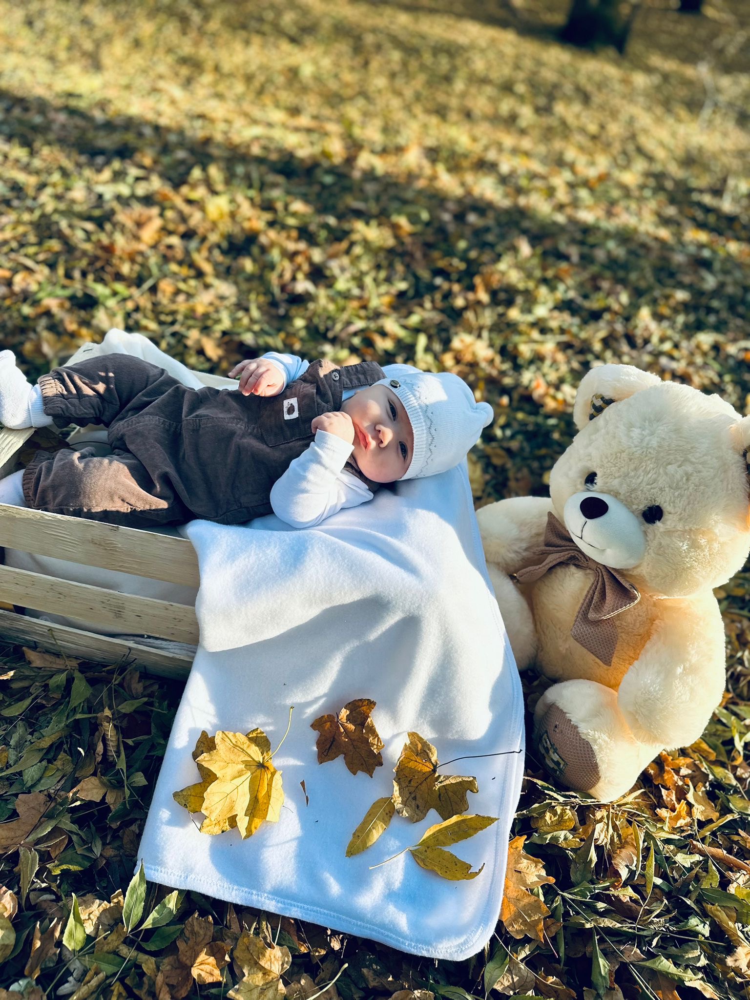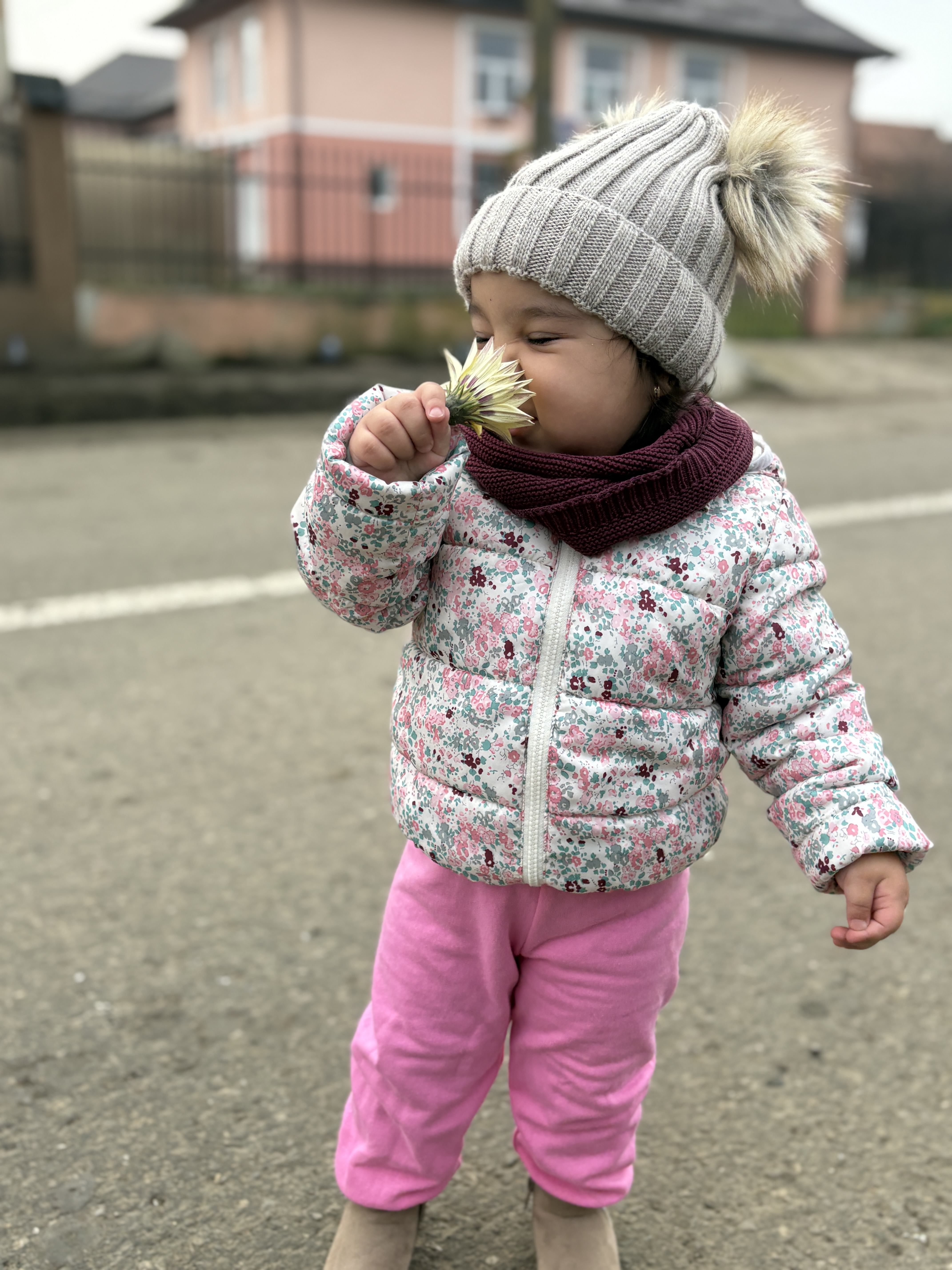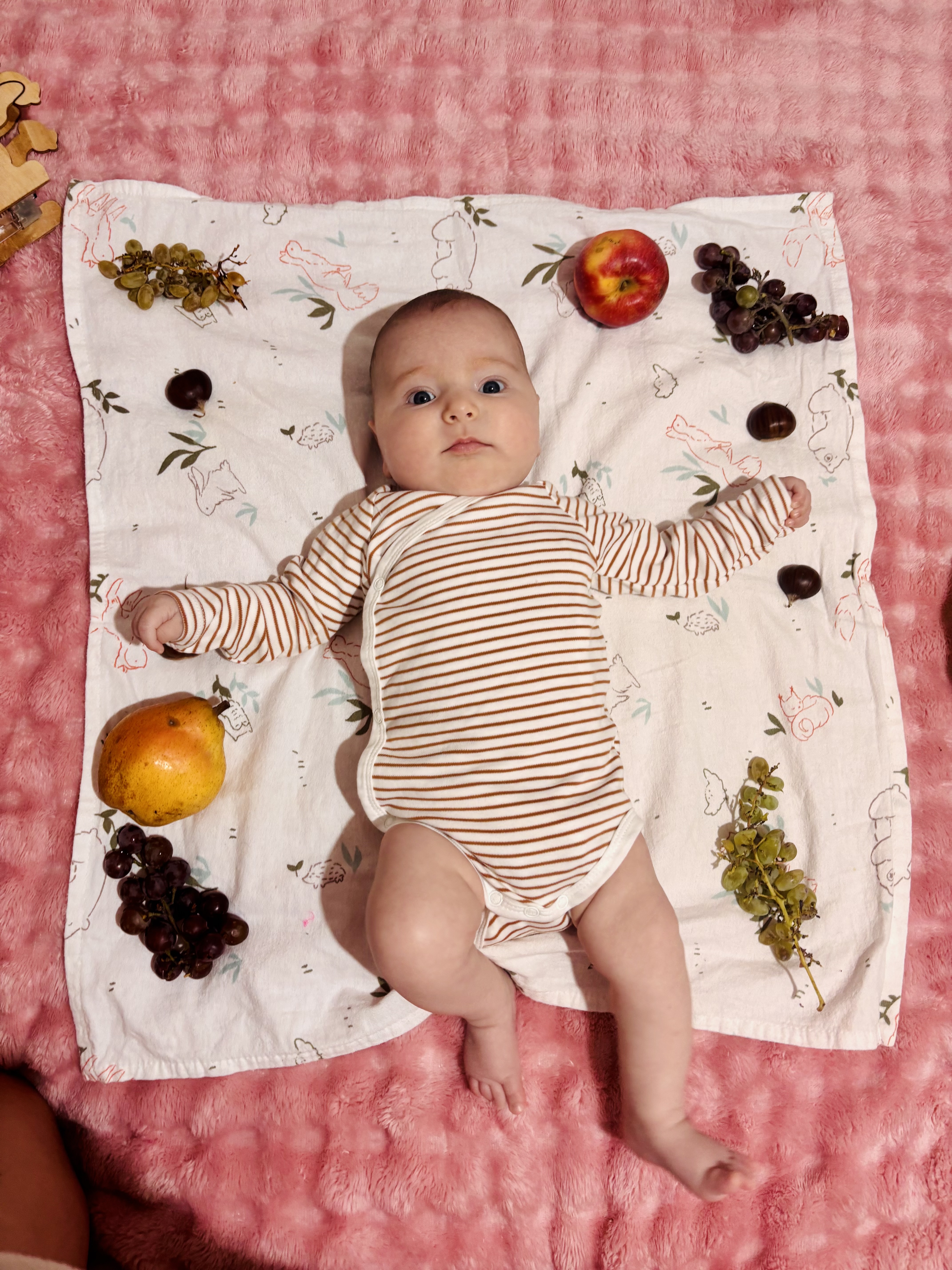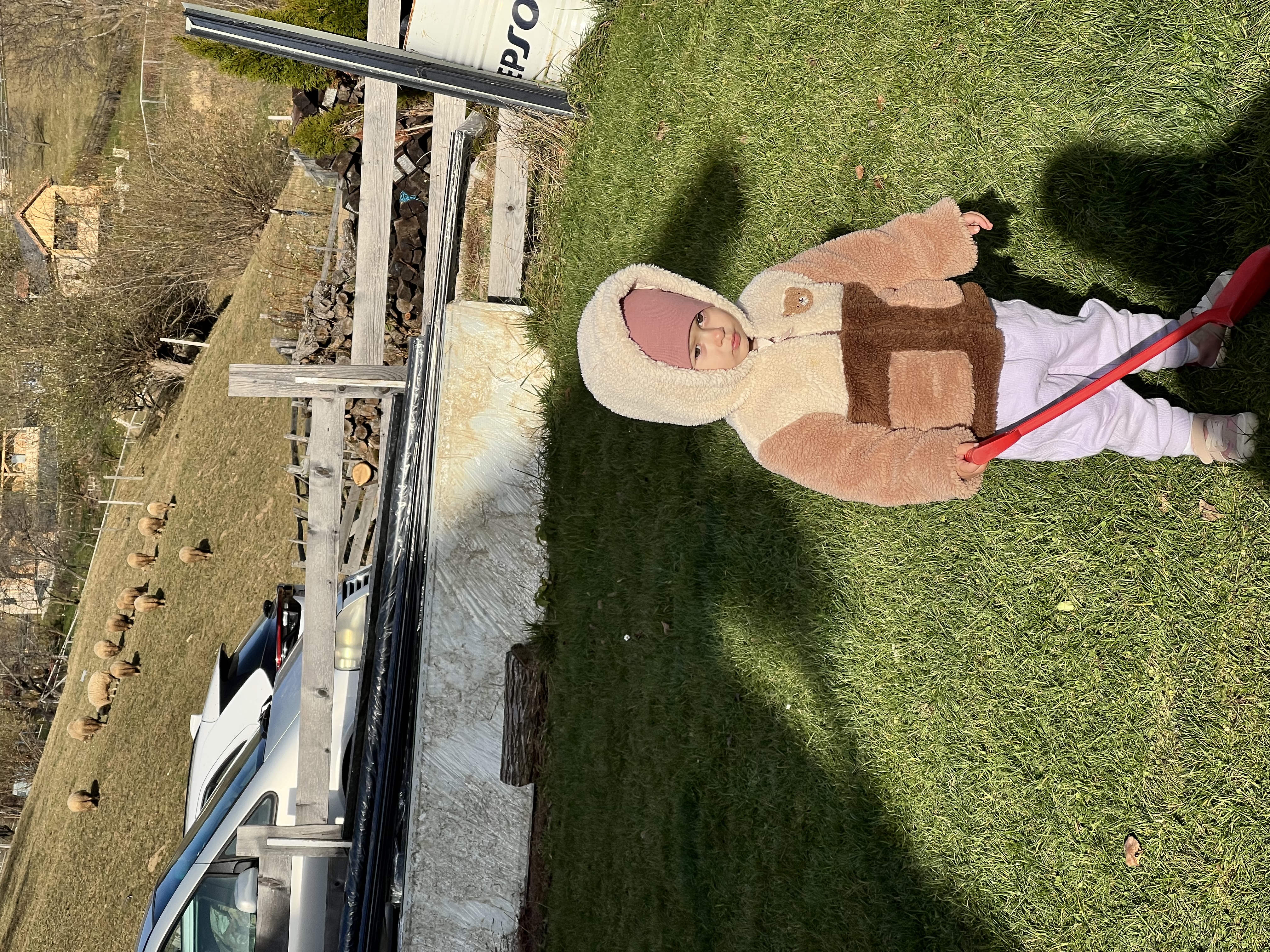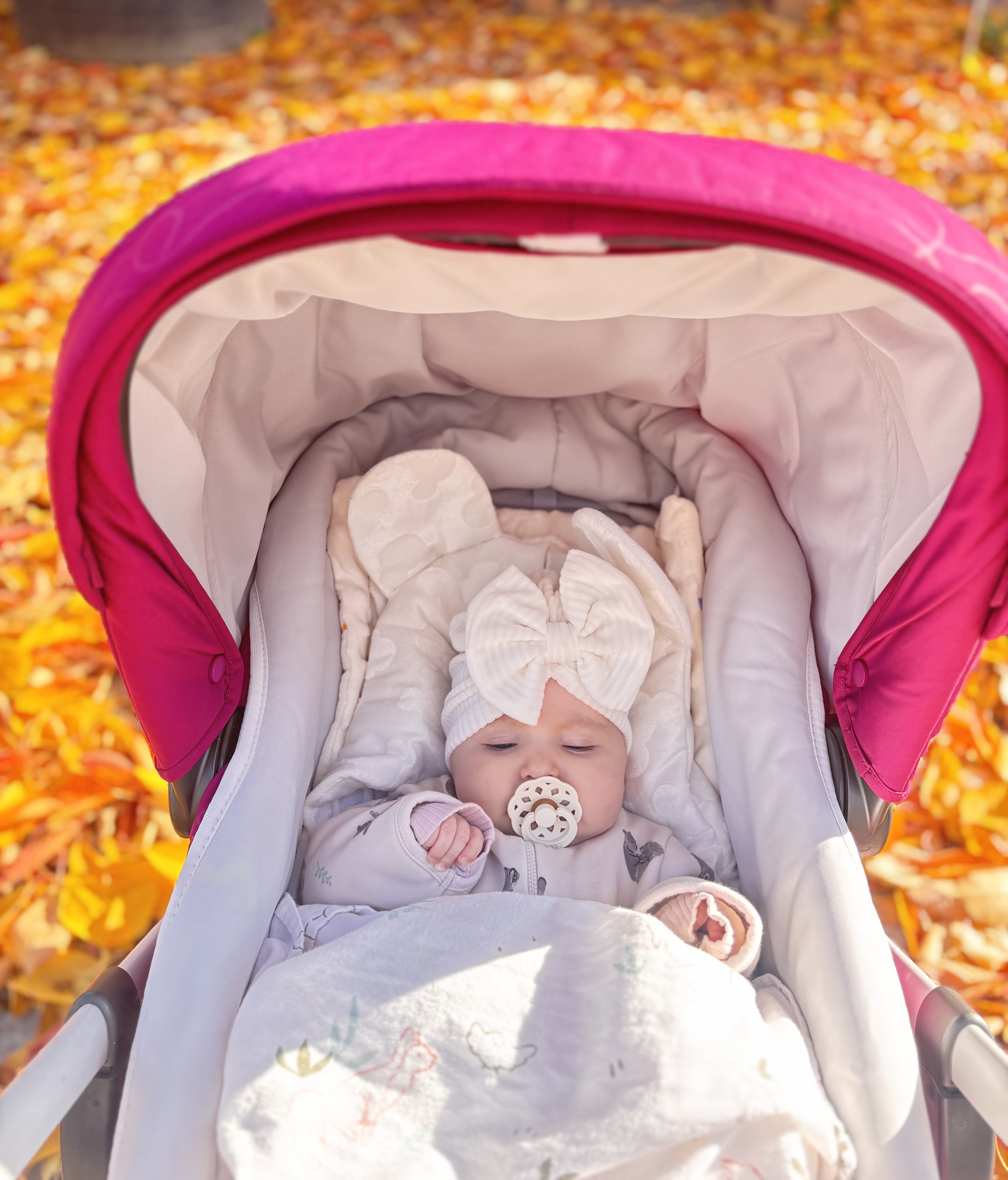 Toamna are o prințesă: Eva, cu frunze-n jur și un dovlecel zâmbăreț.🤭