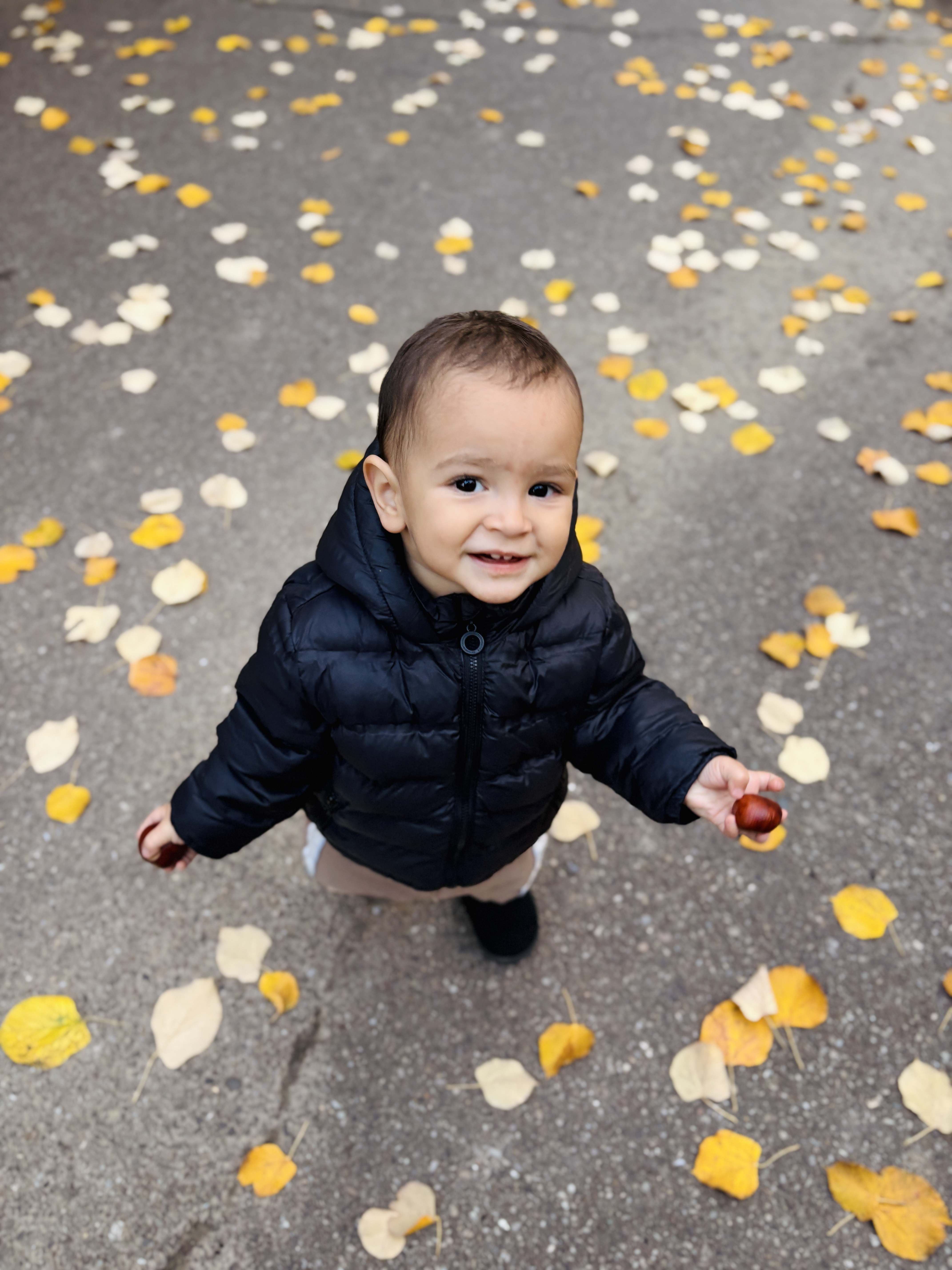 Băiatul meu frumos, prima toamnă în care își adună singur castanele