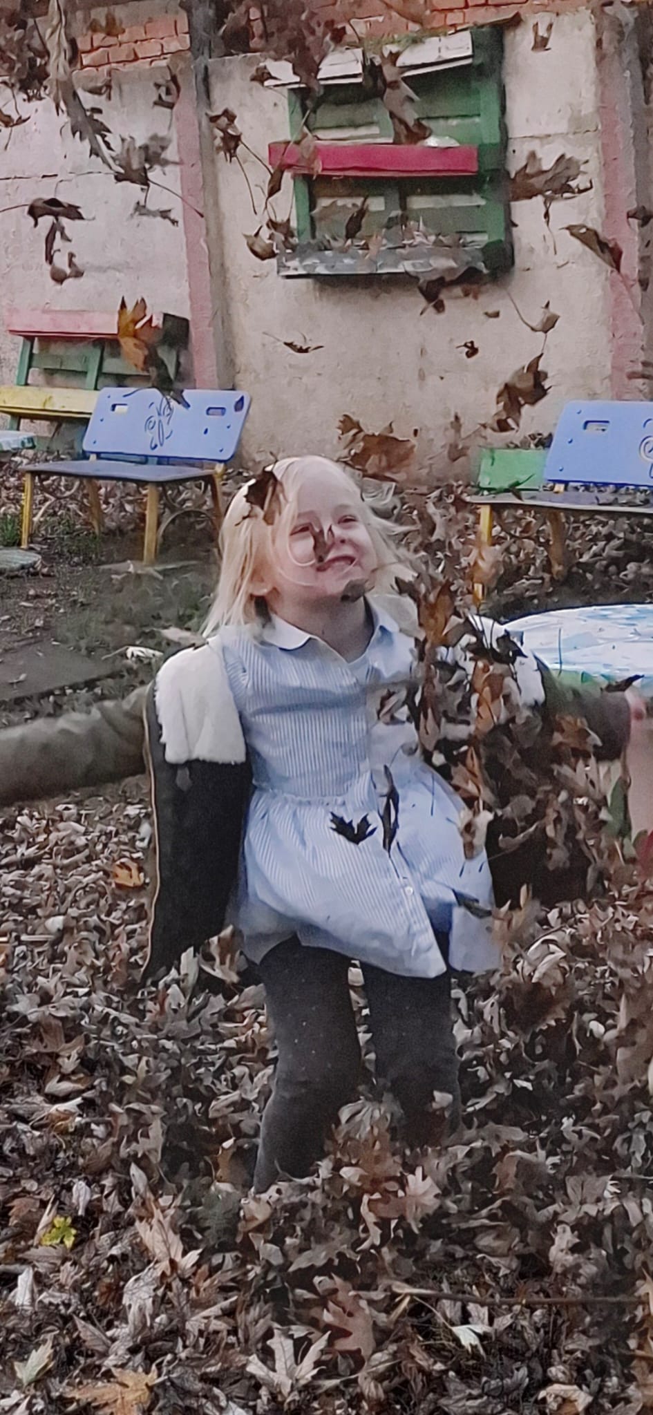 Printre frunzele căzute într-o zi frumoasă de toamnă