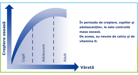 În cazul copiilor și al tinerilor, în timpul creşterii, se formează multă masă osoasă - marea majoritate a masei osoase formându-se în primii 20 de ani de viaţă.